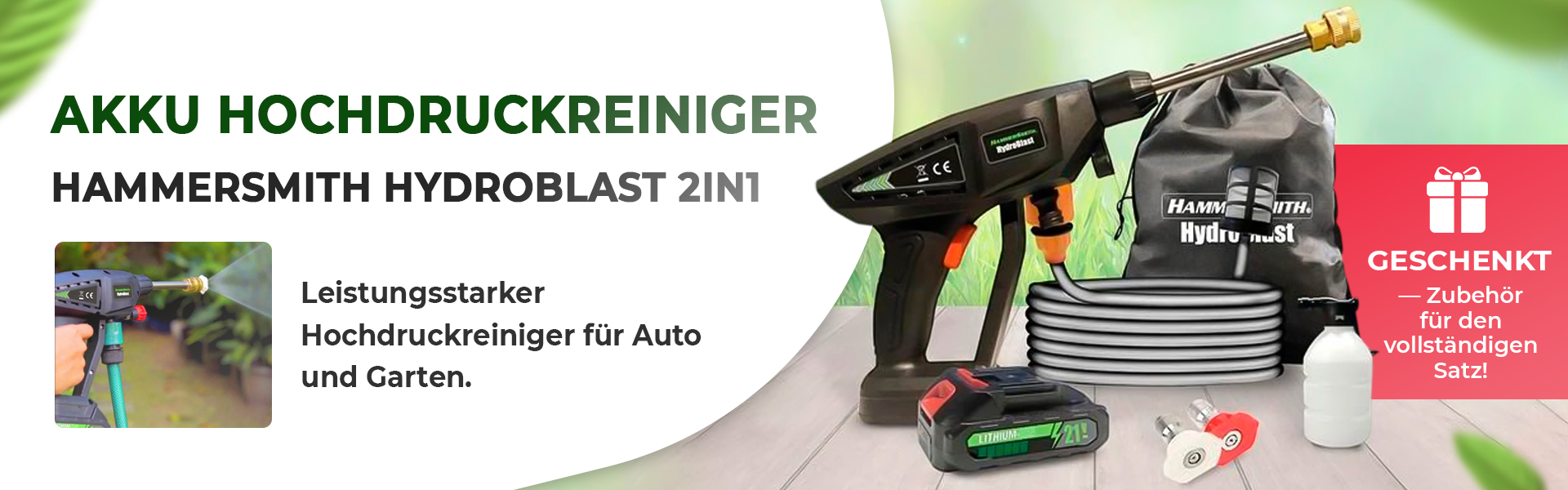 Hammersmith HydroBlast Akku Hochdruckreiniger - Entfernen Sie Schmutz ohne Kompromisse
