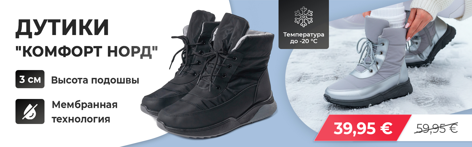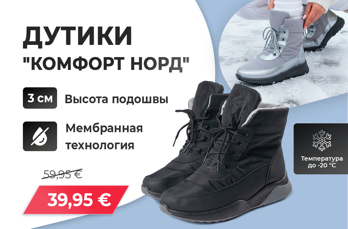 Дутики "Комфорт Норд" — это тёплая, лёгкая и удобная обувь для зимнего сезона, рассчитанная на температуру до -20 °C. Они идеально подходят для повседневной носки в холодную и влажную погоду, обеспечивая комфорт и надёжную защиту от холода и влаги.